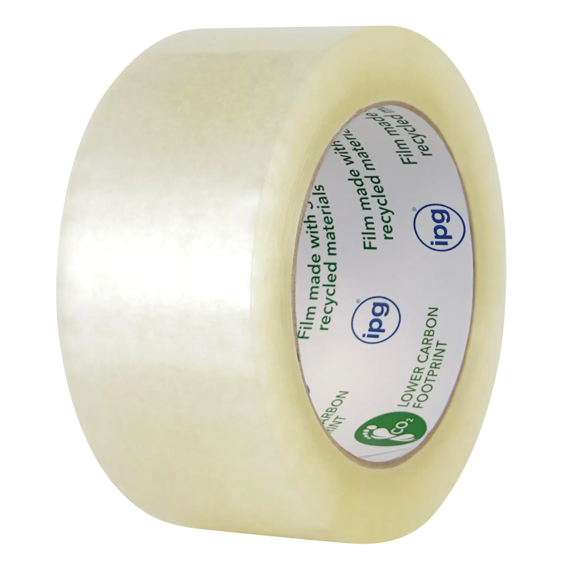 Biaxially-oriented polypropylene (BOPP) film with at least 30% Post-Industrial Recycled content, and coated with high grade, pressure-sensitive, water based, modified acrylic emulsion adhesive. Best suited for reliable, all-temperature box sealing performance (0ºC ~ 65ºC) where resistance to aging, weathering, UV light, and yellowing are important.