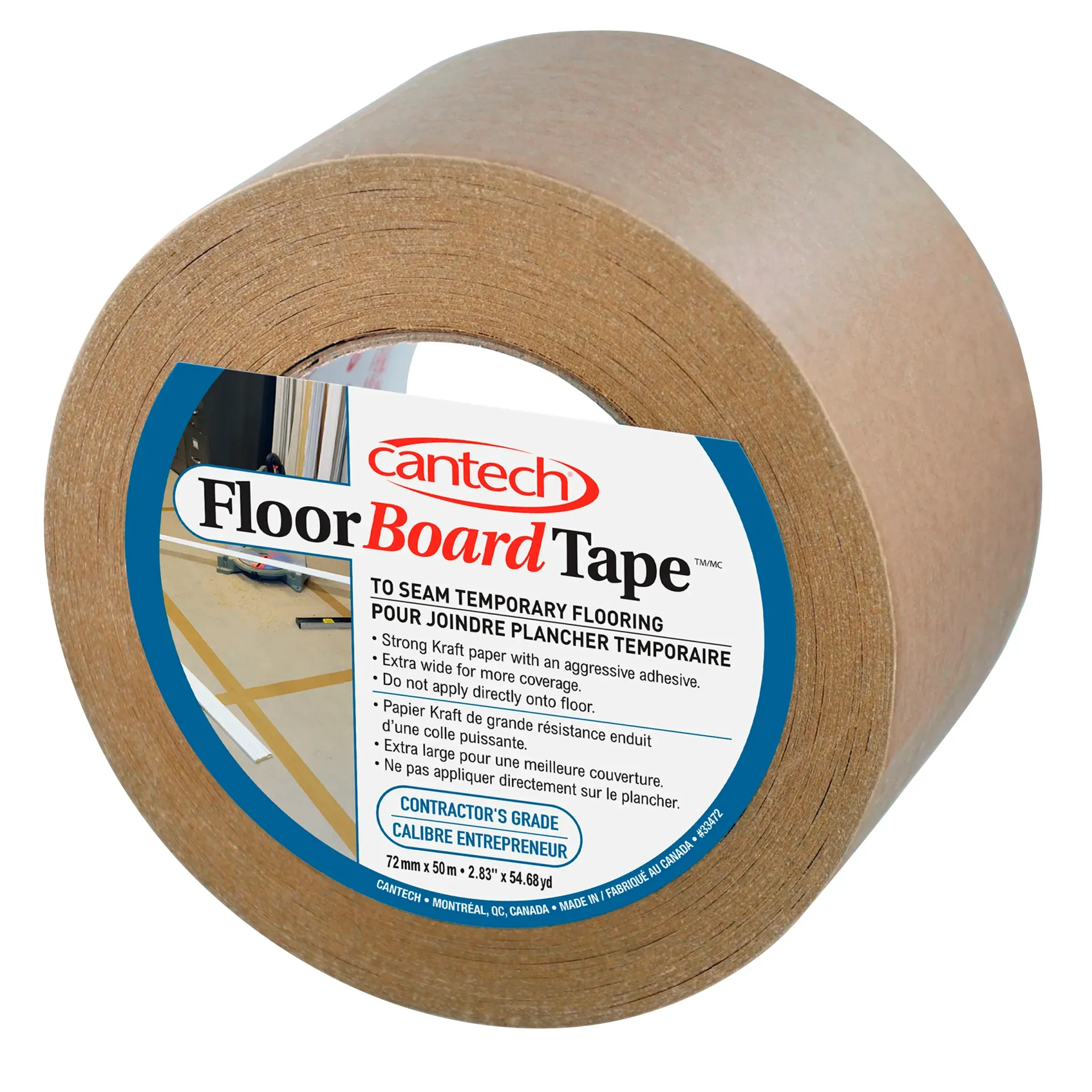 Strong kraft paper with an aggressive adhesive, used to seam temporary flooring. Extra wide for more coverage.